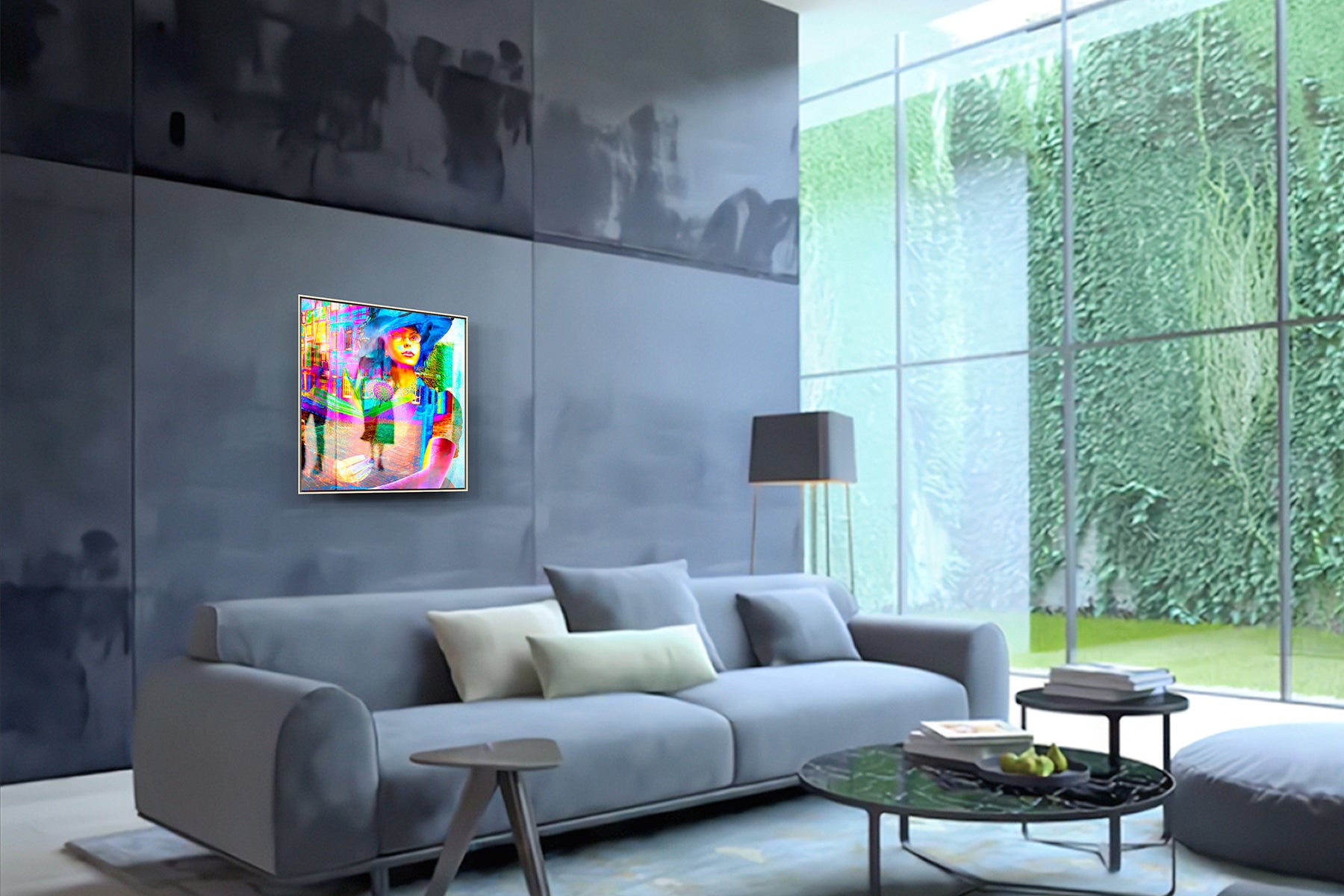 גודל היצירה 78 על 78 על 2.5 ס"מ; לא ממוסגרת מתוחה על מסגרת עץ.